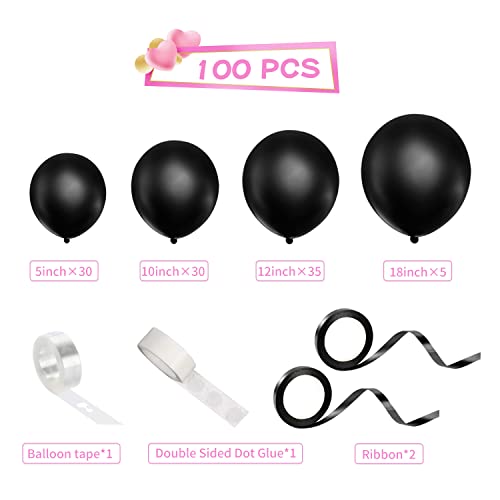 100 Pezzi Palloncini Neri Kit Arco Ghirlanda Palloncini Neri Arco Palloncini Compleanno Nero per Compleanno Laurea Halloween Masquerade Decorazioni per Feste a Tema Nero, 12 cm/ 25 cm/ 30 cm/ 45 cm