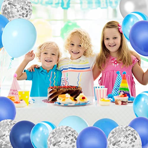 134 Pezzi Palloncini Arco Ghirlanda Blu, Baby Shower Ragazzi Compleanno Laurea Matrimonio Bianco Argento Lattice Coriandoli Palloncini Metallici Decorazioni per Feste Forniture