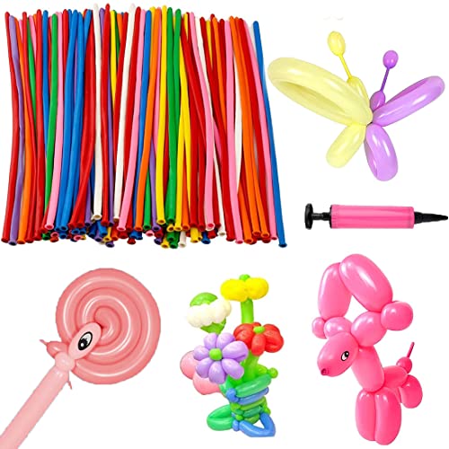 HSS 100 Pezzi Palloncini Modellabili,Magici Palloncini, Assorted Colors Lungo DIY Lattice Palloncini,con Una Pompa per Matrimoni, Compleanni, Feste e Anniversari.