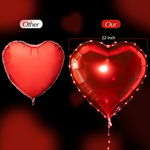 4 Pezzi Palloncini in Pellicola di Alluminio a Cuore Rosso da 22 Pollici con 4 Luci di Fata Rosse Palloncini di Cuore di Valentine con Luci Stringa a LED per Decorazione Feste di Matrimoni