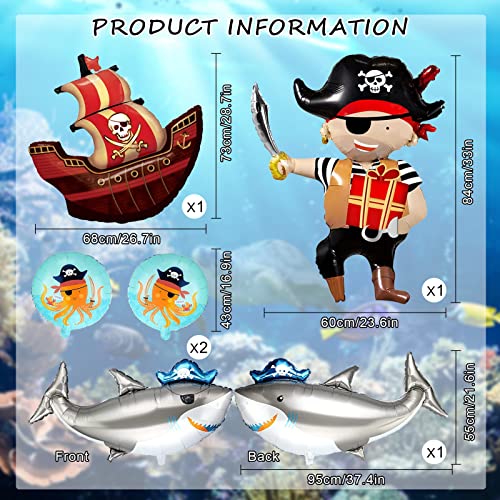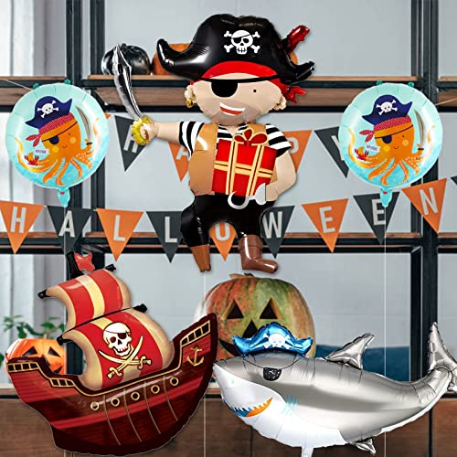 5 Pezzi Palloncini Pirata,Pirati Palloncini di Compleanno,Giganti Palloncini Foil Nave Pirata, Rotondi Pirata Palloncini,Palloncini Squalo Animali Oceano,Pirata Decorazioni Compleanno per Bambini
