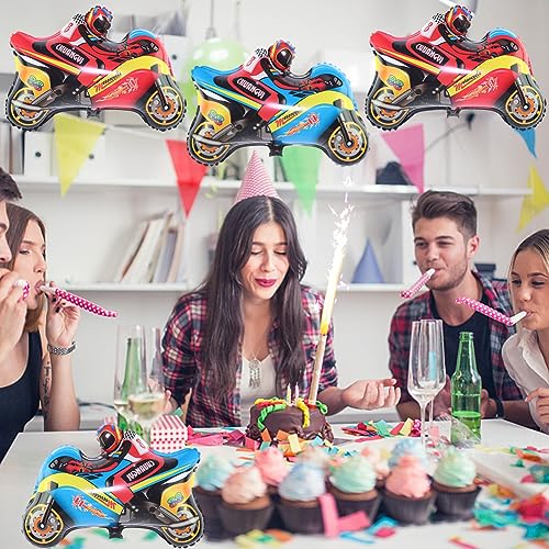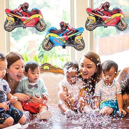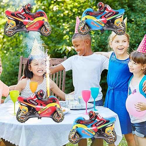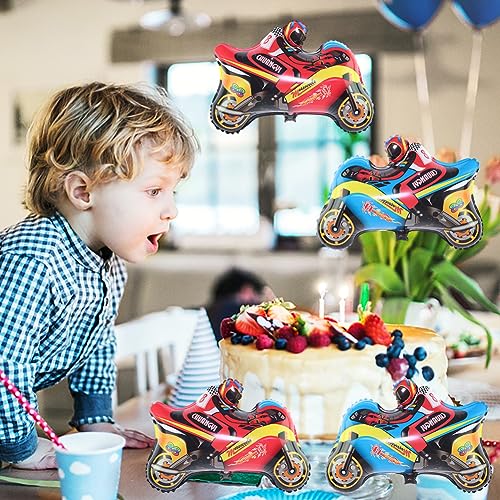 4 pezzi Palloncino Moto, Pallone in Foil Moto, Palloncini ad Elio Moto, Palloncino in Foil con Cappello da Motociclista Rosso Blu, per i Ragazzi Bambini Festa di Compleanno Deco Supplies