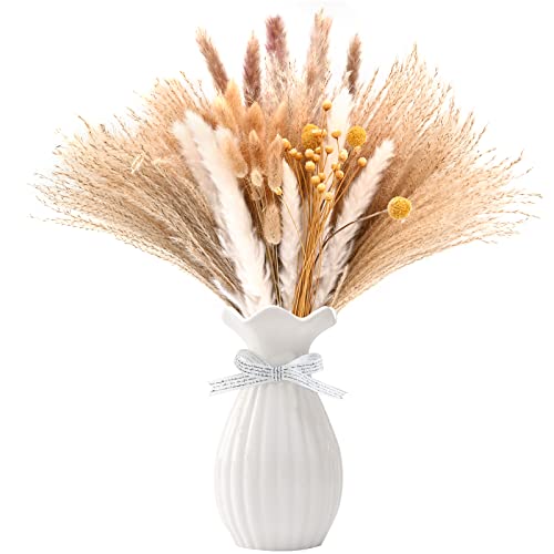★ Set di bouquet di pampa - Riceverete un totale di 103 erbe di pampa, tra cui 10 erbe di pampa di colore bianco, 10 erbe di pampa di colore naturale, 20 code di coniglietto naturali, 30 erbe di amante di colore originale, 30 fiori felici e 3 palline dorate.