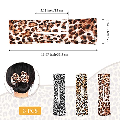 3 Pezzi Panino Abile Creatore di Chignon di Capelli Elegante Clip di Stoffa Multicolore Fasce per Capelli Bun Torcitore Colorate Forte Elastico Riutilizzabile (Modello Leopardato)