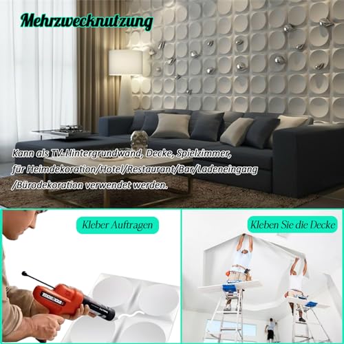 ✅【FACILE DA ASSEMBLARE E PULIRE】: questo pannello murale 3D non è autoadesivo (è necessario fornire la colla da soli). Consigliato: stucco per giunti ad asciugatura rapida, primer per pareti, adesivo siliconico bianco, nastro per mascheratura, adesivo senza chiodi, adesivo per piastrelle. Pulisci la superficie prima di decorare.