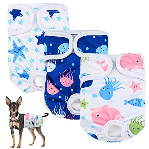 3 Pezzi Pannolini Cane Lavabili, Riutilizzabili Mutandine Igieniche per Cani Di Piccola Media Grande Taglia, Regolabile Femmina Pannolini per Cani Incontinenti,Con Buona Assorbenza (M)