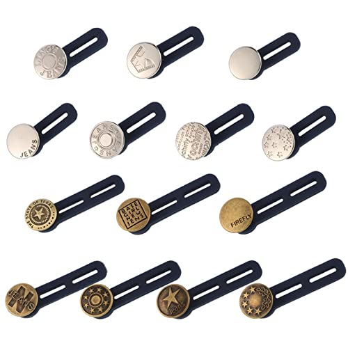 ★ 14 stili diversi: ottieni 14 pezzi di estensioni per bottoni di pantaloni in bronzo e 14 pezzi di estensioni per bottoni di pantaloni in argento. Ci sono un totale di 14 modelli diversi, 2 ciascuno. Semplice ed elegante, può essere indossato con diversi stili di abbigliamento per creare un'atmosfera diversa.