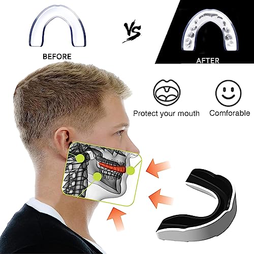 Adatto a una varietà di sport: questa protezione dei denti delle arti marziali si è ispessita per proteggere pino e denti, adatti per l'uso in boxe, arti marziali, hockey, MMA, rugby, taekwondo e per evitare lesioni del morso in bocca.