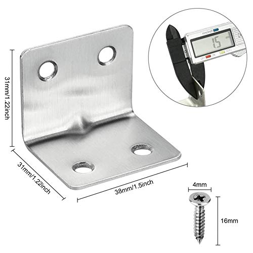 12 Pezzi L Parentesi angolari Squadrette Angolari Supporto giunto ad angolo retto Acciaio Inox Squadrette Acciaio Squadrette Angolar a Forma di L per ripiani in legno (31 x 31 x 38 mm)