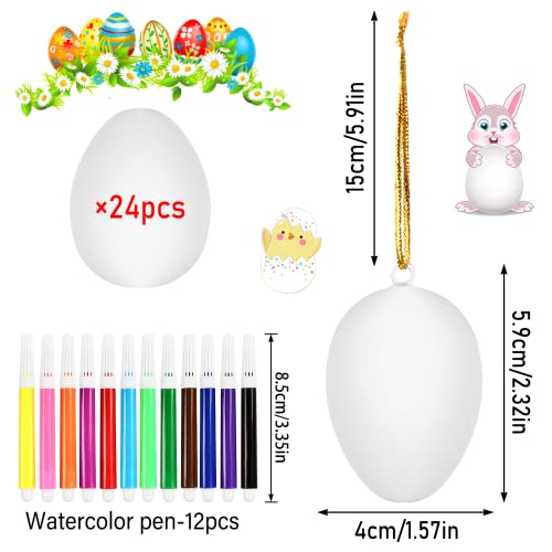 24 Pezzi Uova Pasqua da Appendere, Uova di Pasqua Decorazioni, Bianco Uova Pasquali con La Corda, Pittura di Artigianato Fai da Te di Pasqua, per Regalo e Decorazione, con 12 Pennelli