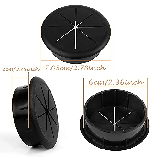 ★【Ampia Applicazione】 Otterrai 5 coprifori per cavi neri con un diametro esterno di 70 mm e un diametro del foro di 60 mm. Il passacavo può essere utilizzato non solo per la casa ma anche per le apparecchiature dell'ufficio. Molto adatto per scrivanie per computer, scrivanie o altri mobili.
