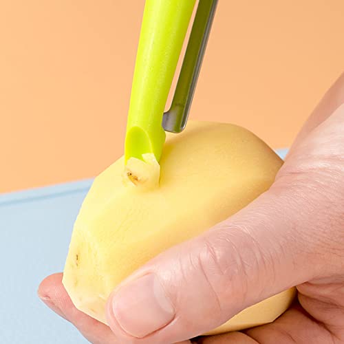 Dispositivo di rimozione dell'occhio di patata incorporato, ampio foro nell'impugnatura per una facile conservazione.