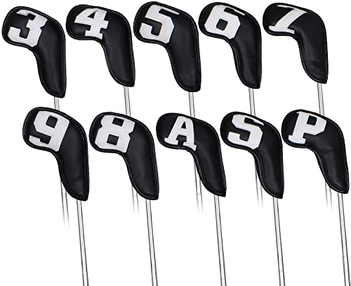 10 pezzi in pelle sintetica per testa da golf in ferro con chiusura magnetica, collo lungo, protegge chiaramente l'albero della mazza con numero 3-9/A/P/S (numero bianco)