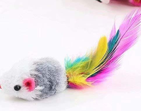 4 pezzi di pelliccia in topo gatto giocattolo con piume e gatto (colore della pelliccia casuale)