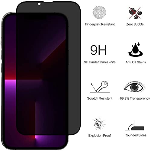 2 Pezzi Pellicola Protettiva Anti-Spy Vetro Temperato per iPhone 13 Pro, Protezione Schermo Trasparente Ultra Resistente, Anti-Graffi, Anti-Impronte [durezza 9H], [Alta Definizione], [Anti-Bolle]