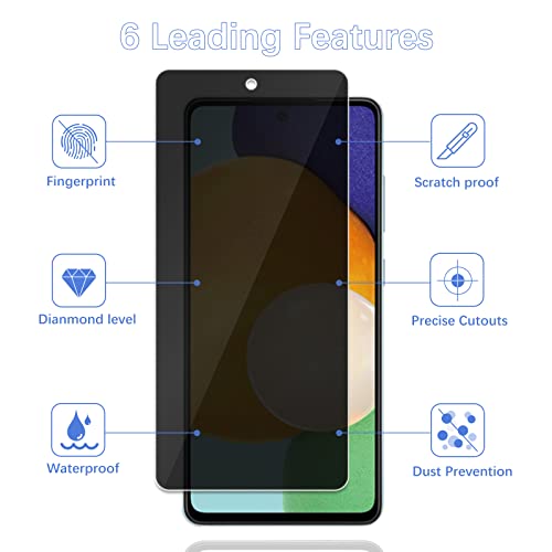 【Compatibile】 :Una pellicola protettiva in cristallo temperato anti-peep compatibile con Samsung Galaxy A52, facile da installare e senza bolle sullo schermo del telefono.