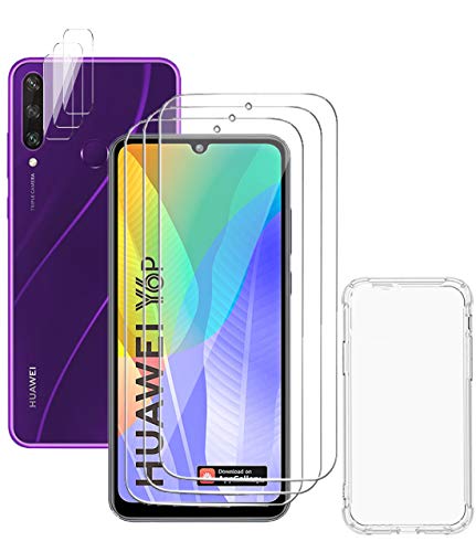 [7 Pezzi]: 1x Custodia in TPU silicone, 3x Pellicola Vetro Temperato, 3x Pellicola Fotocamera per Huawei Y6p. La custodia trasparente è progettata con 4 angoli del cuscino d'aria contro cadute e urti.