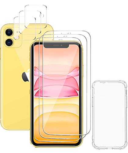 [7 Pezzi]: 1x Custodia in TPU silicone, 3x Pellicola Vetro Temperato, 3x Pellicola Fotocamera per iPhone 11. La custodia trasparente è progettata con 4 angoli del cuscino d'aria contro cadute e urti.