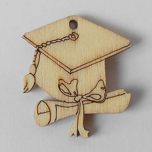 24 Pezzi Pendente Ciondolo Tocco Laurea Pergamena in Legno 3,5cm Applicazione Legnetti Decorativi Charms per bomboniere, Sacchetti, segnaposto Forme Miniatura Naturale