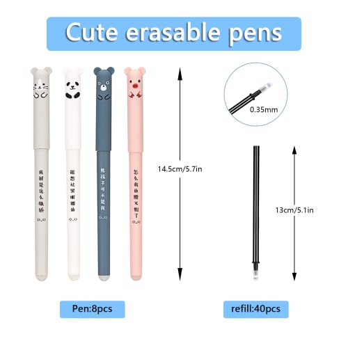 8 Pezzi Penna Gel Cancellabile a Forma di Animale+40 Ricariche Penne Cancellabili Nere Penna Cancellabile Nere Penne a Inchiostro Gel Cancellabili Cartoni Penne Carine per Studenti, Scuola, Ufficio