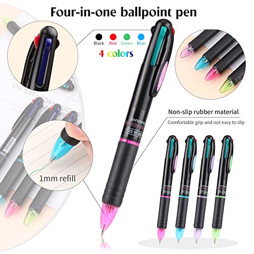 12 Pezzi Penna Multicolore 4-in-1 Penne a Sfera Retrattili Penna personalizzata Penne a Scatto da 4 Colori per Ufficio Scuola Forniture Regalo di Studenti Bambini 0,7 mm