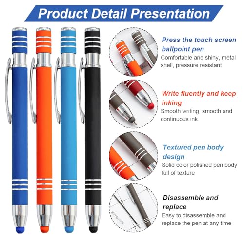 Multifunzione due in uno: penna capacitiva e penna a sfera con design due in uno, questa penna stilo ha una penna a sfera sostituibile su un lato e una penna capacitiva sullaltro lato. Puoi scegliere tra 10 diversi colori.