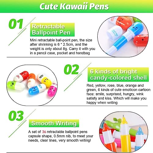36 Pezzi Mini Penne, 2 Pezzi Adesivi Premio,Penna per Bambini, Penna Capsula, Regalo Penna a Sfera Retrattile, Penna a Sfera Portatile, per Bambini, Studenti, Casa, Scuola, Ufficio