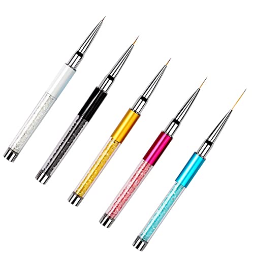 ZSDF 5 pezzi Pennelli per decorazione unghie, Pennelli professionali per nail art, set di pennelli per nail art Designs, Strumenti di manicure per trattini, penna da disegno 5/7/9/11/20 mm