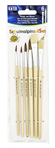 TSI - Set di 6 pezzi pennelli, numero 2, 4, 6, 10, Pennello con setole numero 8, 12, impugnatura naturale