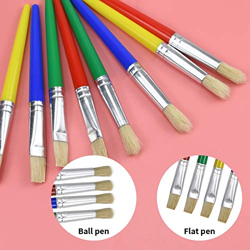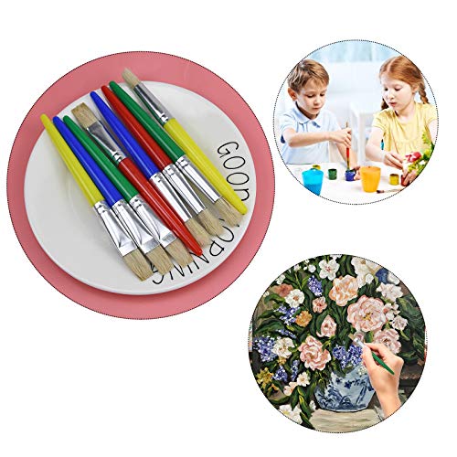 8 Pezzi Pennelli da Pittura per Bambini, Colorato Set di Pennelli Pittura Pennelli da Pittura Setola Maiale per Bambini Testa Piatta e Rotonda Pennelli Artista Pennello Bambini Set Pennelli Dipingere