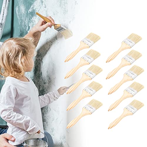 10 Pezzi Pennelli da 2,5 Pollici in Lana Artificiale con Manico in Legno per Vernici Colle Vernici