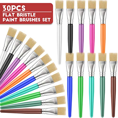 30 Pezzi Pennelli a Punta Piatta Set di Pennelli a Setola di Maiale Piatta Larga Pennelli per Bambini in Colori Assortiti con Manico in Plastica Forniture Artistiche per Disegno Pittura