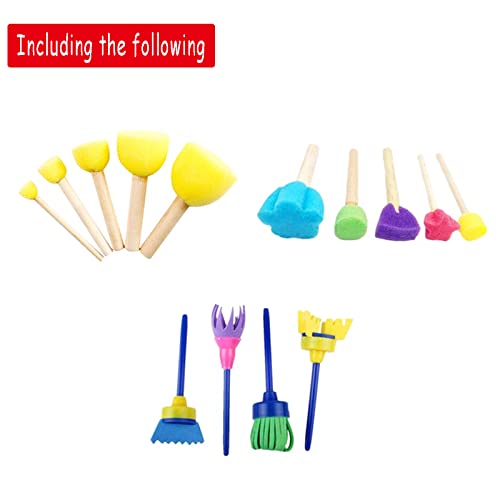 Include: strumenti di pittura spugna pennello sono inclusi 10 pennelli in spugna doodle e 4 pennelli per scopa, con stili diversi, i bambini possono creare forme, motivi e disegni unici.