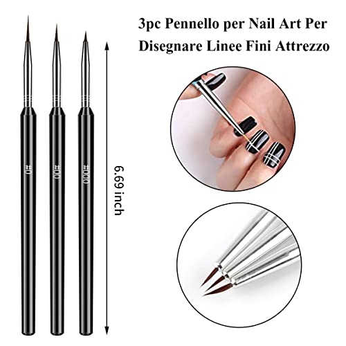 3 Pezzi Pennelli Unghie, Pennelli Unghie Gel, Decorazioni Unghie Penne, Miniatura Pennelli, Per Disegnare Linee Fini Attrezzo, Decorazioni Unghie Painting Detailing, Nail Art Design