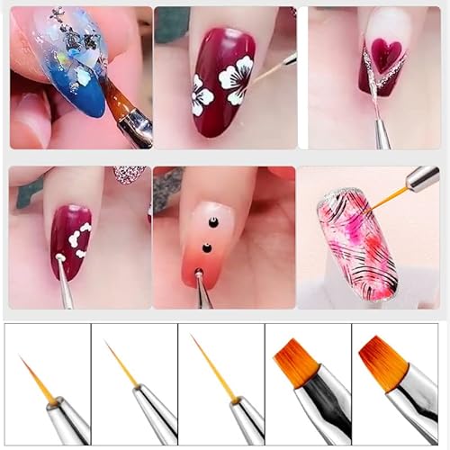 通用 8 pezzi Pennelli Unghie Gel, Double Head Pennelli per Unghie, Pennello Nail Art, Painting For Designing Nail Art Fai Da Te e Dettagli