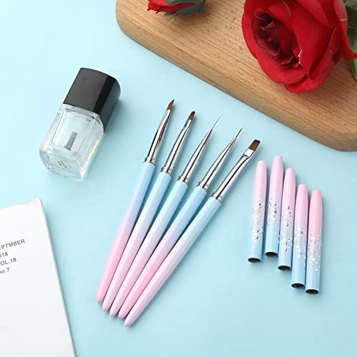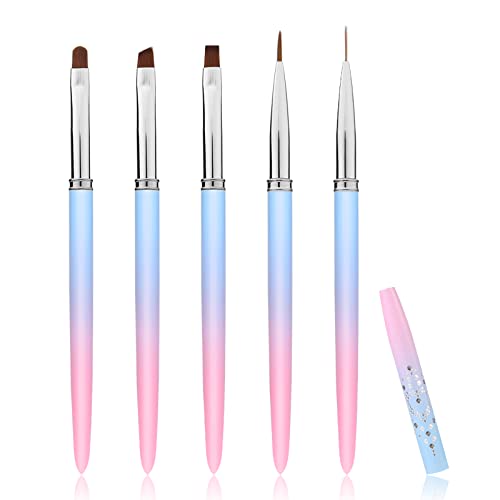 3 Pezzi Pennelli per Unghie+2 Pezzi Nail Liner Brushes, Testa Rotonda/Piatta/Angolata Pennelli Unghie per Pulire gli Errori, Nail Art, Disegno al Tratto, Ritocco, Resistente all'Acetone