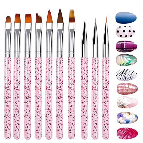 10 Pezzi Pennelli per Unghie,Rosa Pennello gel unghie per Nail Art Design,Pennelli Unghie per Gel UV Nylon Decorazione Kit DIY,Nail Art Pennelli Set per Painting Detailing,Rosa