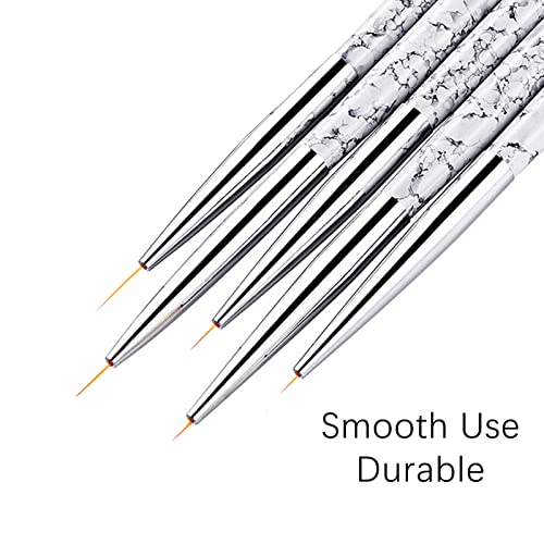 5 Pezzi Pennelli per Unghie,Pennelli per Unghie Professionali,Decorazioni Unghie Penne,Pennelli Nail Art per Disegnare Linee Fini(Bianco)
