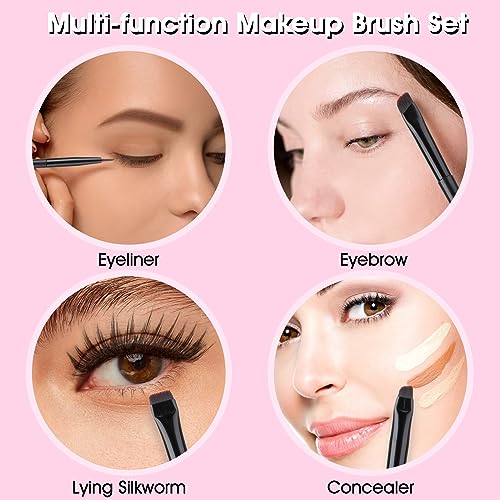 7 Pezzi Pennello per Eyeliner Smussato Fine Set di Pennelli per Trucco per Eyeliner in Gel di Precisione Piatto Pennello per Sopracciglia Smussato Strumento per Eyeliner per Ombretto