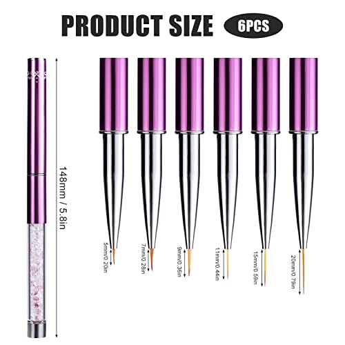 6 pezzi Pennello per Smalto Unghie, 5/7/9/11/15/20 mm Pennello per Smalto Gel Strumento e Pennello per Punteggiare le Unghie per il Salone di Casa Manicure Fai-Da-Te