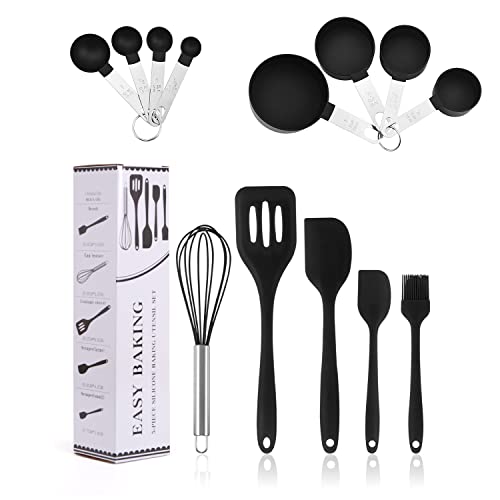 11 pezzi di pentole in silicone set manico in legno resistente al calore gadget da cucina secchio di stoccaggio pentole antiaderenti (nero)