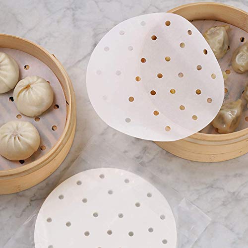 NC 100 Pezzi Pergamena Rotonda Carta Pergamena Anti-Aderente Foglio Perforato per Friggitrice ad Aria Cottura a Vapore, 23CM/9 Pollici