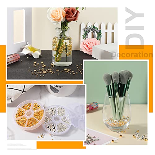1370 Pezzi Perle Acriliche Perline per Trucco Senza Foro Perle Finte Rotonde Assortite Perle Imitate Non Forate per Riempimento di Vasi Decorazioni di Matrimoni Casa Fai da Te, Oro Argento