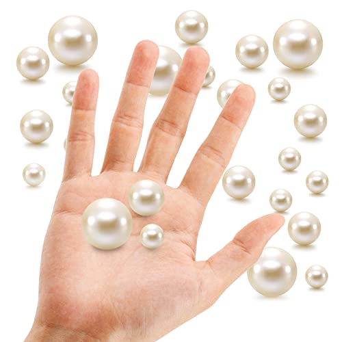 150 Pezzi di Perle Finte, Perle Galleggianti per Riempitivo di Vasi, Perle Lucide Senza Foro di Dimensioni Miste, Perline Sciolte, per Gioielli, Candele Galleggianti, 8/14/20mm (Bianco Crema)