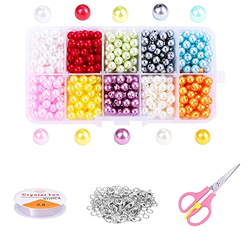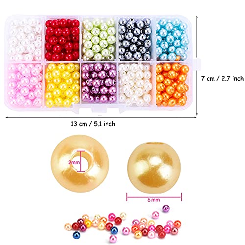 600 Pezzi Perle D'imitazione,Perle Rotonde Colorate, Perline Colorate Artigianali, Materiale ABS, Con 4 Tipi di Accessori, per la Creazione di Gioielli Fai Da Te (10 Colori, 6 mm)