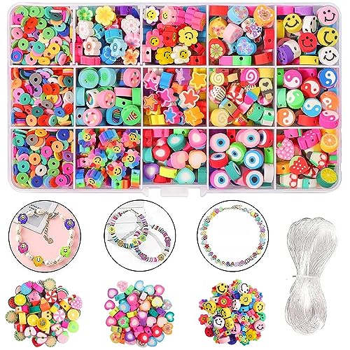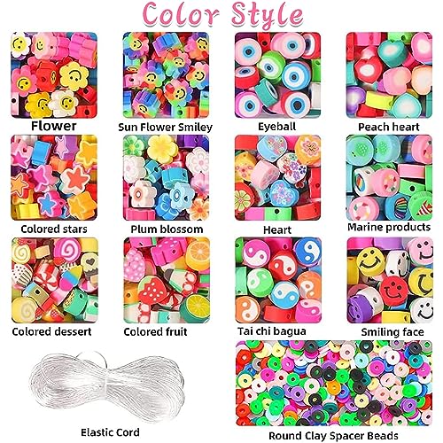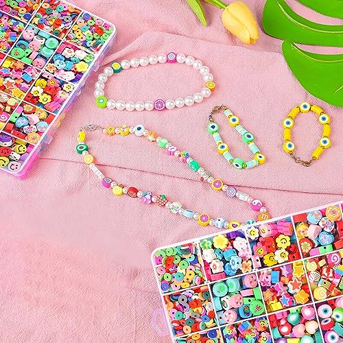 992 Pezzi Perline per Bracciale Perline per Braccialetti Bambini Fai da te Frutta Perline Argilla Polimerica Bambini Smiley Bambini Perline per Fare Bracciali Collana Artigianato Fai da Te