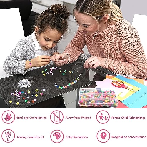 ⭐【SVILUPPO INTELLETTUALE】:Il kit di perline fai-da-te può allenare l'abilità pratica dei bambini, imparare la corrispondenza dei colori, stimolare l'immaginazione, vari mestieri fai-da-te. Create braccialetti, collane, ciondoli e altri gioielli unici con le nostre perline per braccialetti bambini.