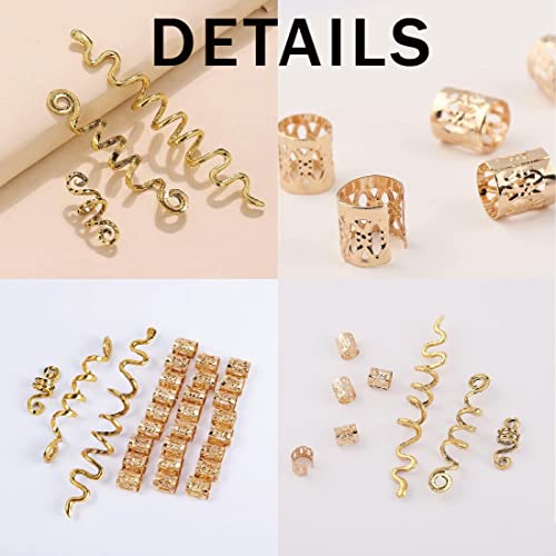 18 Pezzi Perline per Capelli Dreadlocks,Dreadlock Perline Clip a Spirale Per Capelli,Spirali Bobine Per Treccia Per Uomini e Donne,Oro
