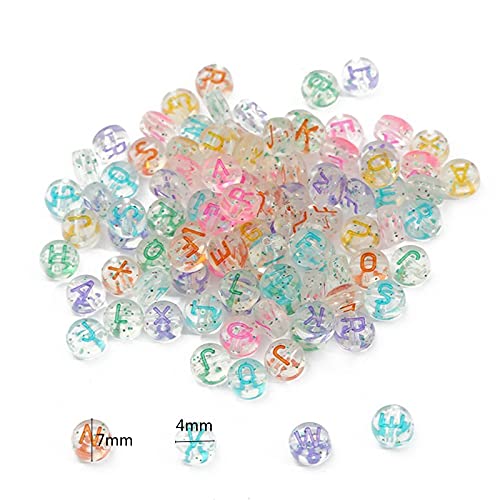 [Dimensioni] Queste perle acriliche trasparenti con lettere sono di colore chiaro con polvere glitterata, le lettere sono doppie, misurano circa 7 mm di diametro, 4 mm di spessore e il foro è di circa 1,5 mm.