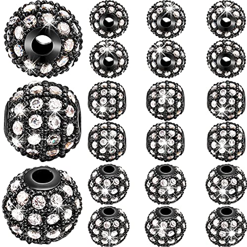 20 Pezzi 8 mm Perline Cubiche di Zirconia, Ciondoli Distanziatore Strass Rotondo per Bracciale, Pietre di Cristallo di Zirconio, Perline a Sfera per Creazione Gioielli Fai da Te (Nero)